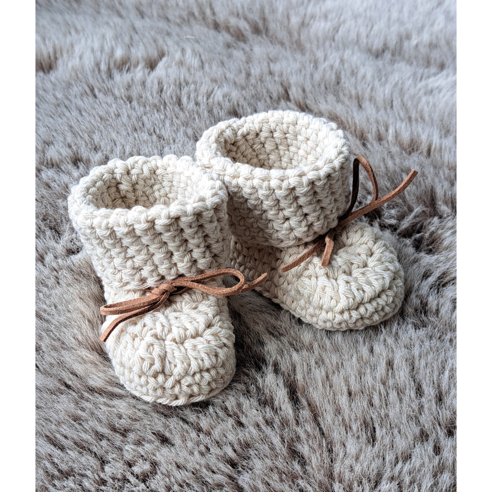 Baby booties / slofjes + suède vetertje , écru