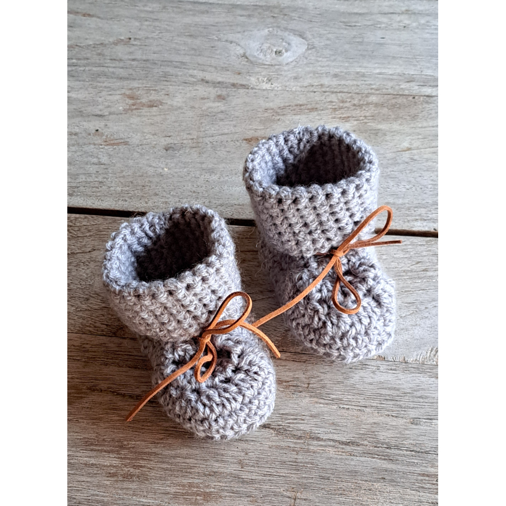 Baby Booties / Slofjes + suède veter , grijs