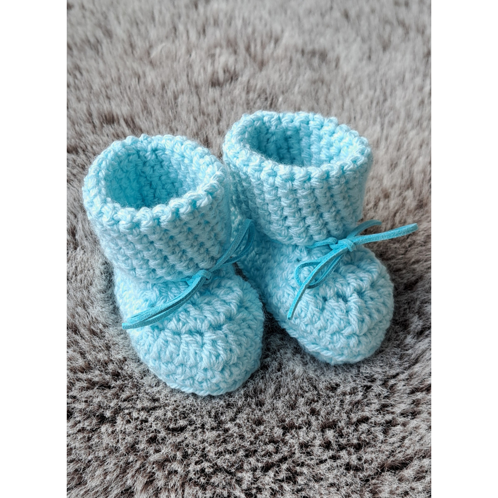 Baby Booties / Slofjes, lichtblauw + suède vetertje