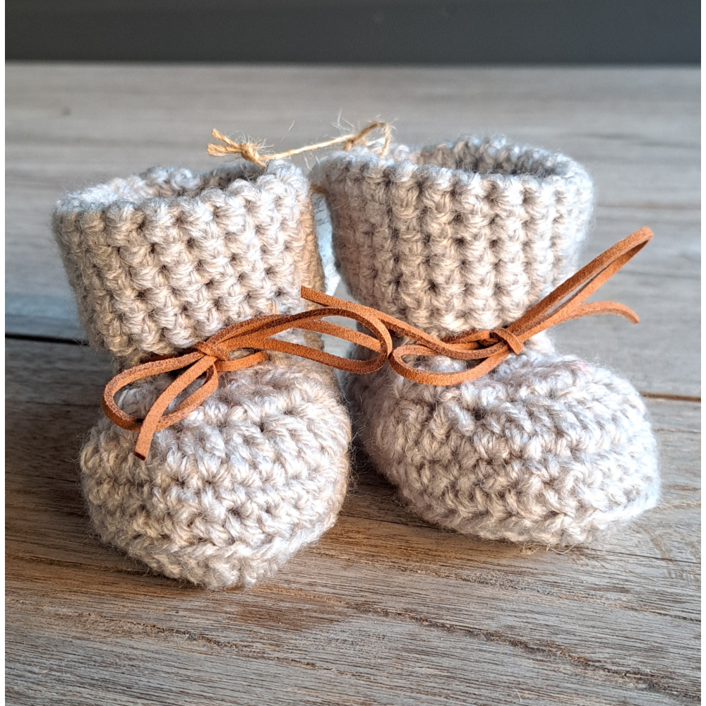 Baby Booties / Slofjes, lichtgrijs met suède veter