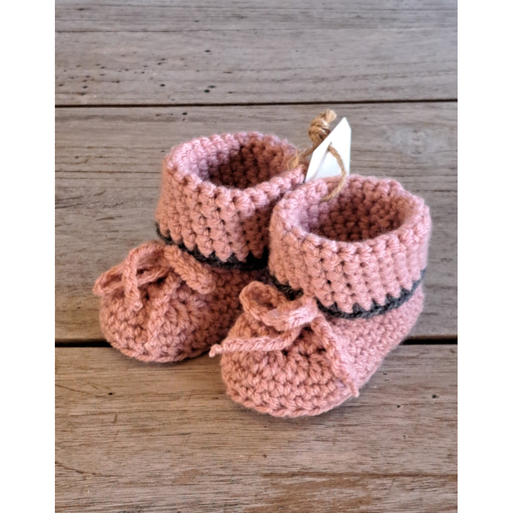 Baby Booties / Slofjes, oudroze + grijze rand