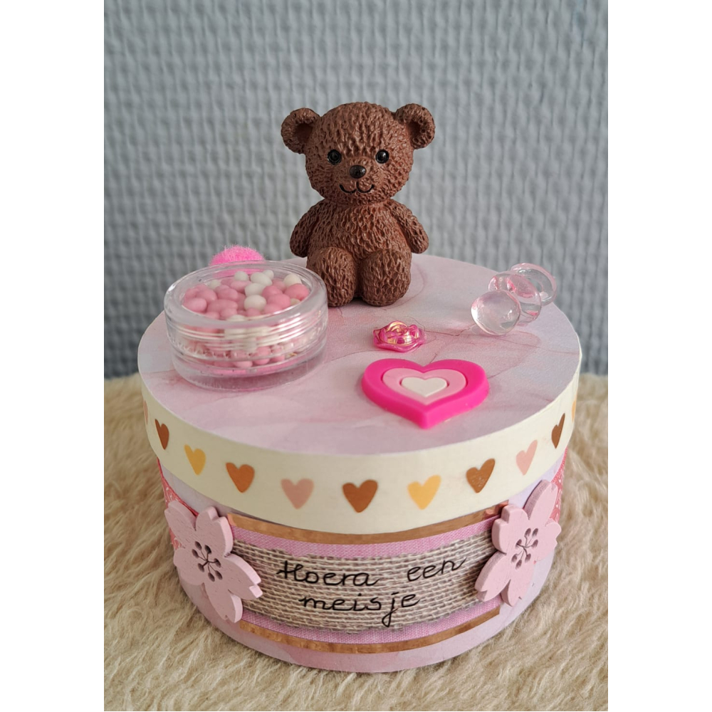De Geboortedoos groot - Hoera, een meisje - roze met hart is een prachtig kraamcadeau om de geboorte van een meisje op een bijzondere manier te vieren.
