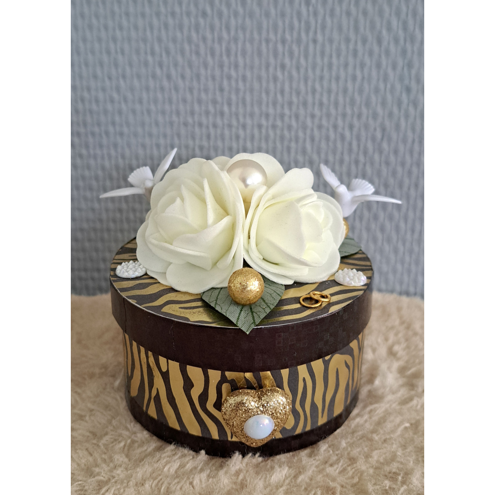 Huwelijks doosje, goud, rozen + duifjes
