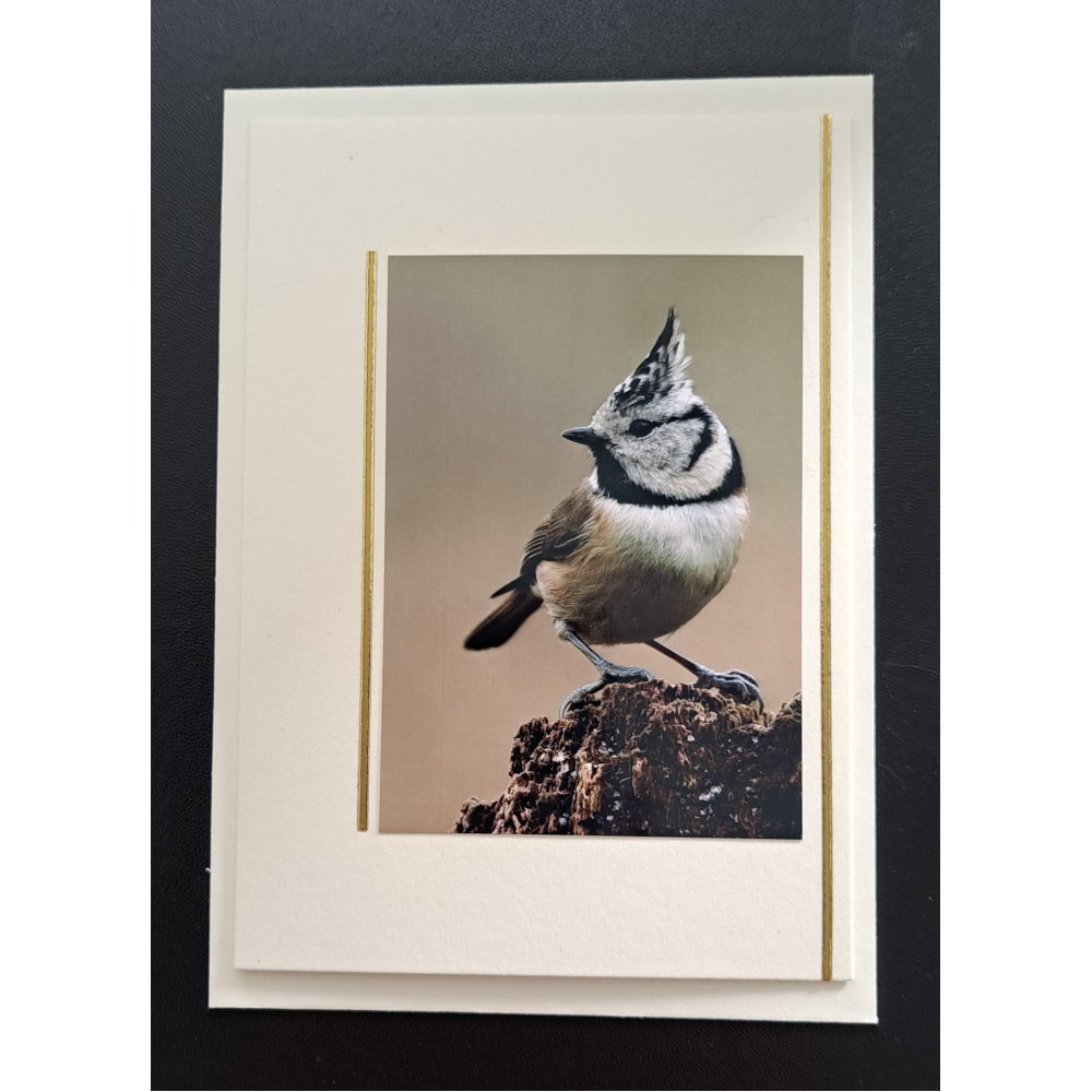 Natuur ansichtkaart - Kuifmees op hout - ivoor