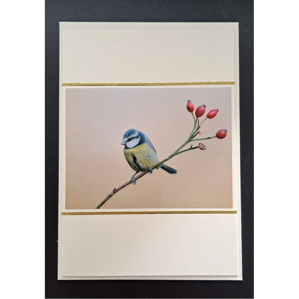 Natuur ansichtkaart - Pimpelmees tak met bessen - ivoor