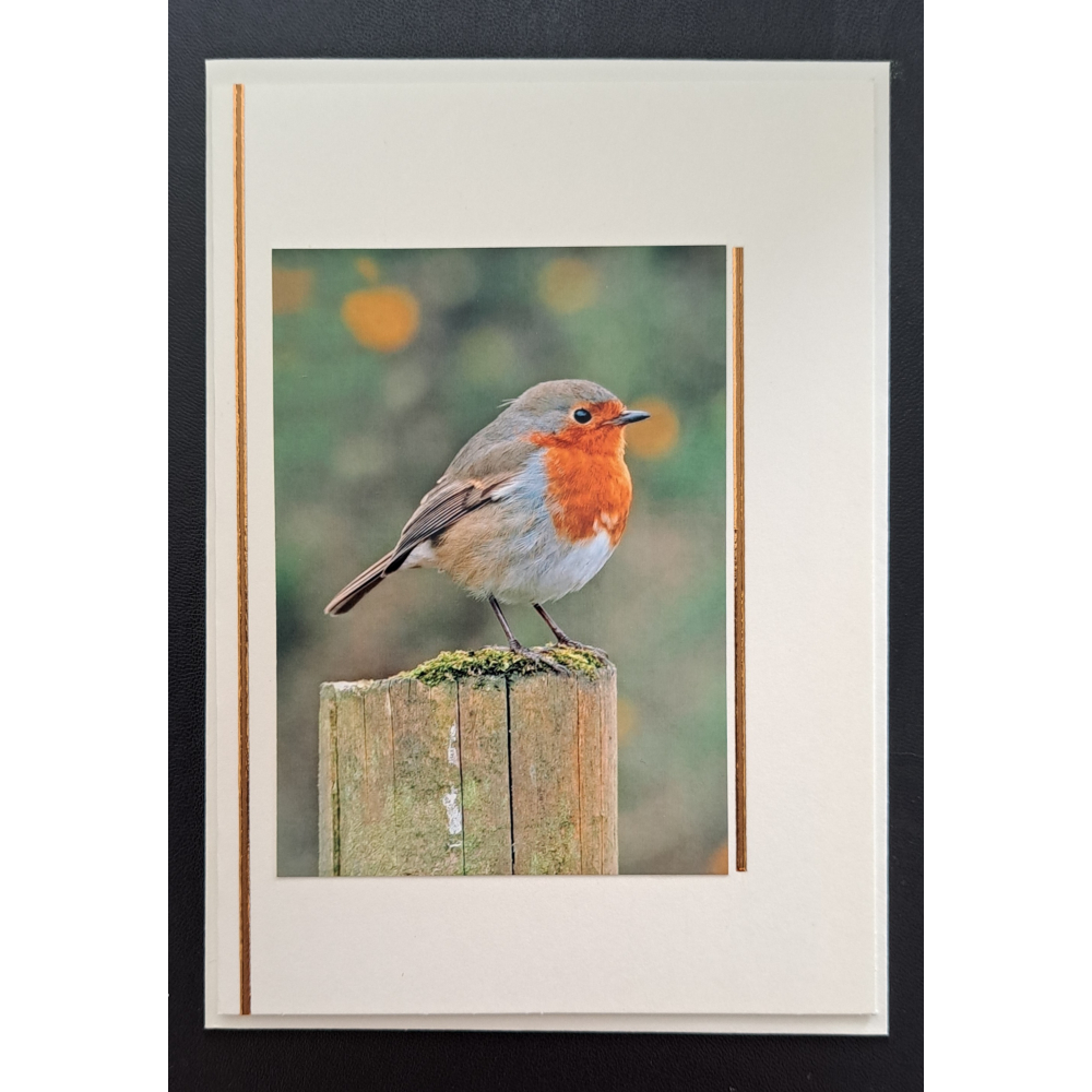 Natuur ansichtkaart - Roodborstje op paaltje - ivoor
