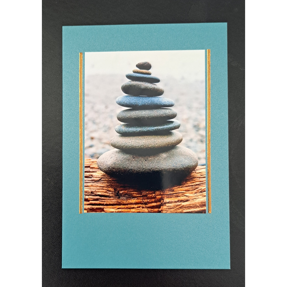 Natuur ansichtkaart - Steenmannetje grijs / blauw - petrolblauw