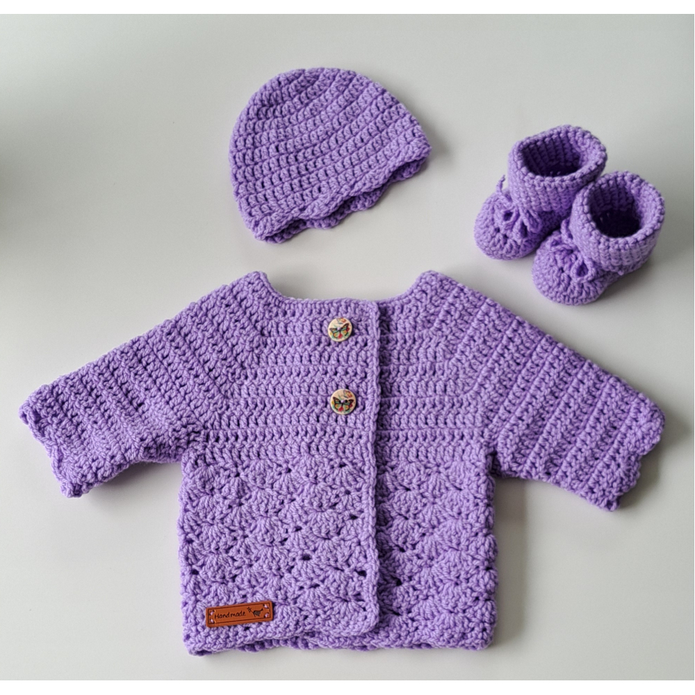 Set: Jasje + beanie / mutsje + slofjes / lila