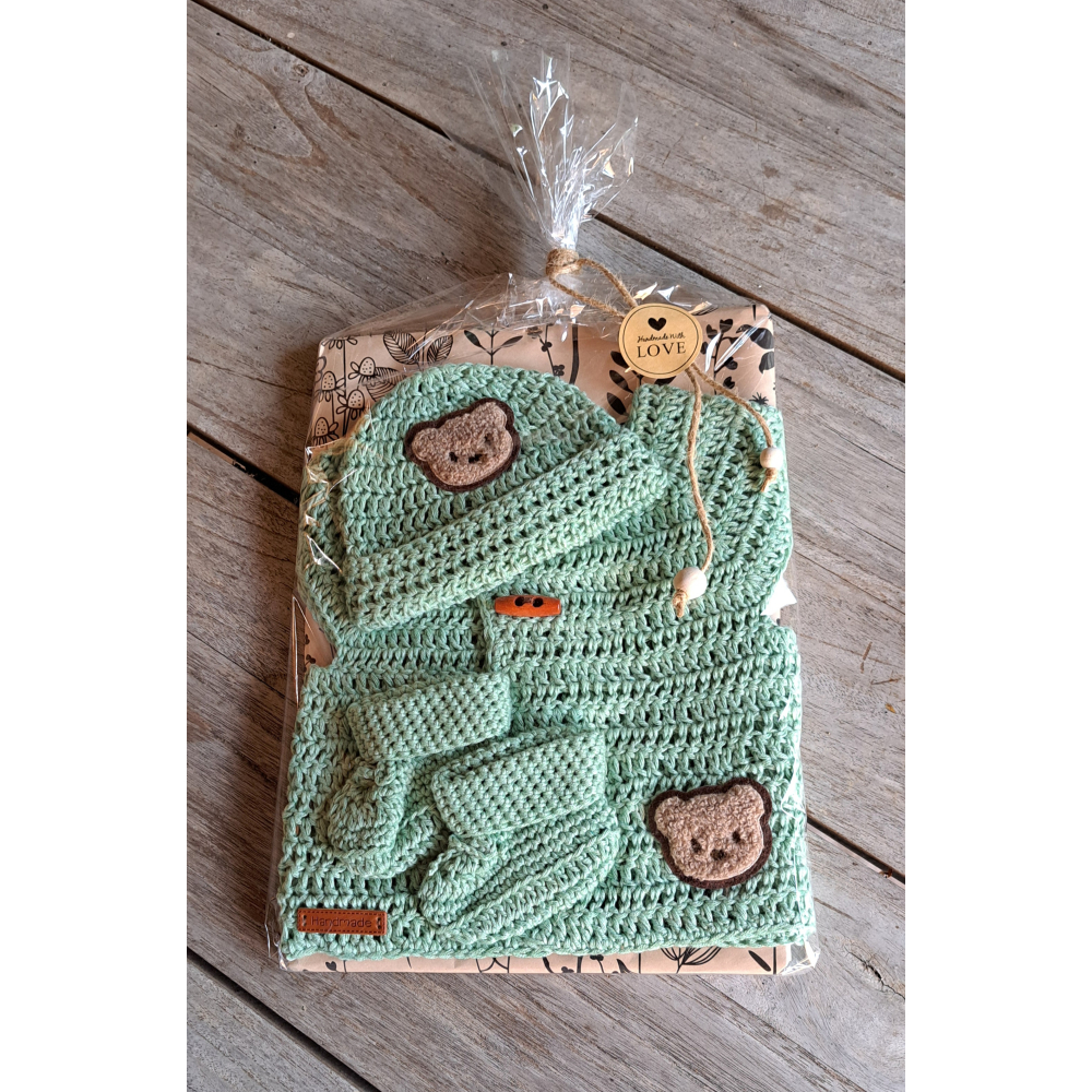 Cadeauset : Mutsje + Jasje + Slofjes / lindegroen