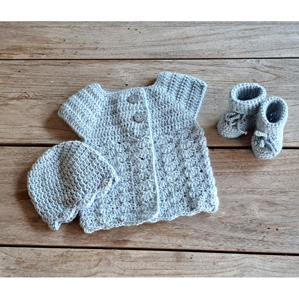 Set : Mutsje + Vestje + Slofjes, ijsblauw