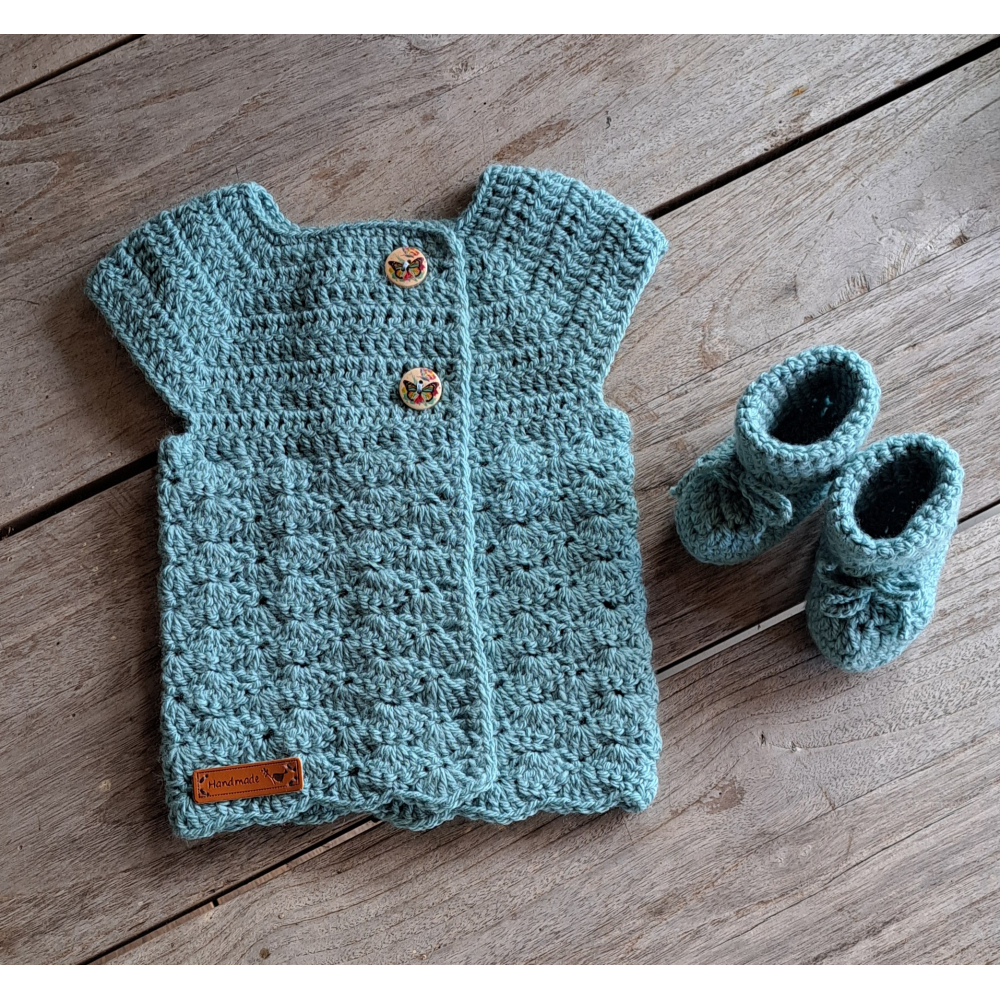 Set: Vestje + slofjes , petrolblauw