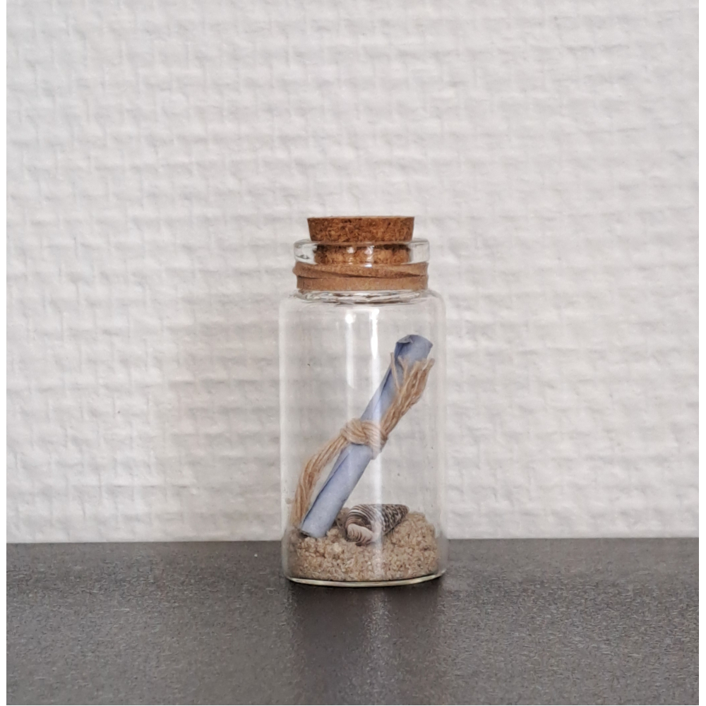 Zand / schelpje / papieren rolletje voor zelfgeschreven boodschap
