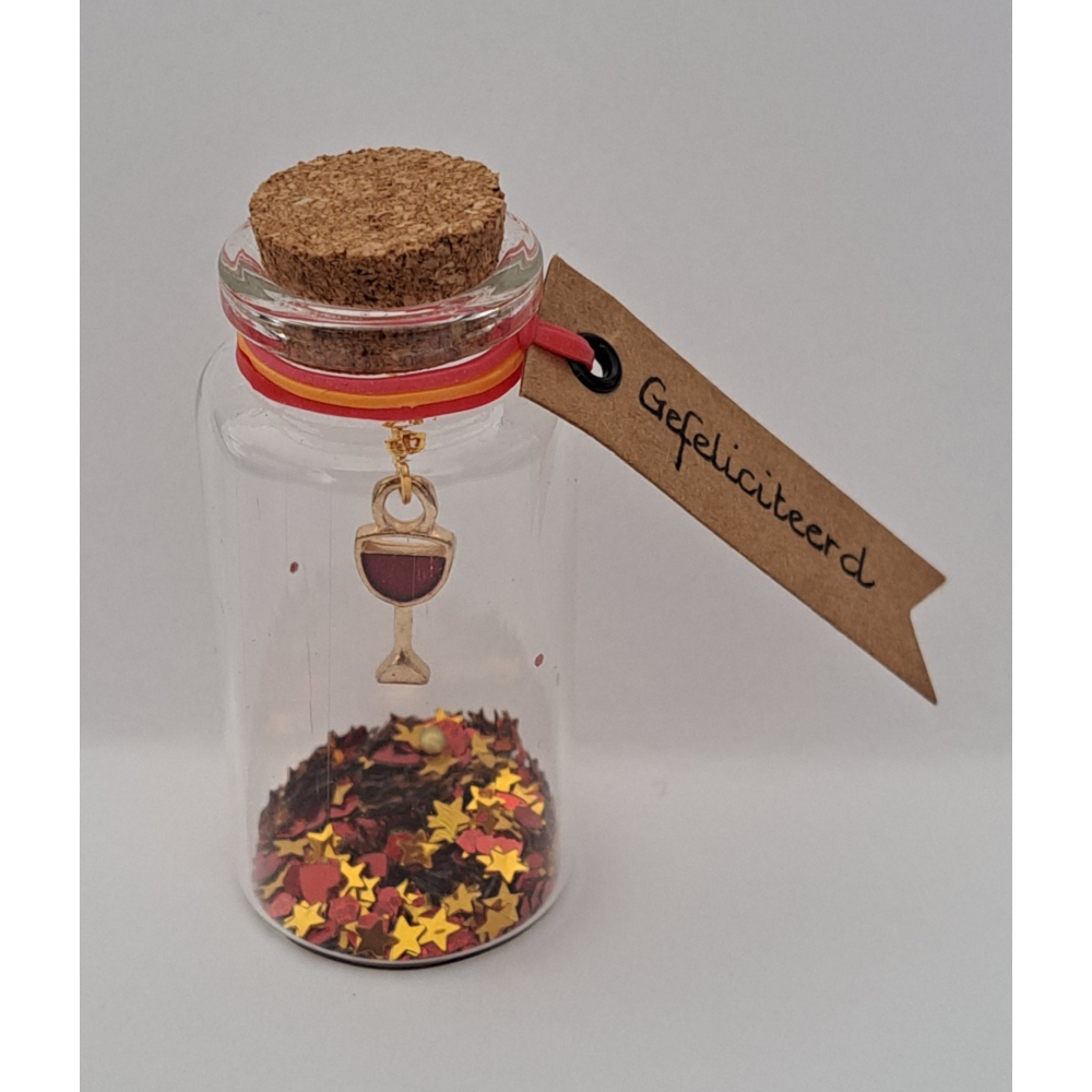 Wensflesje, wijnglas rood, 'Gefeliciteerd'