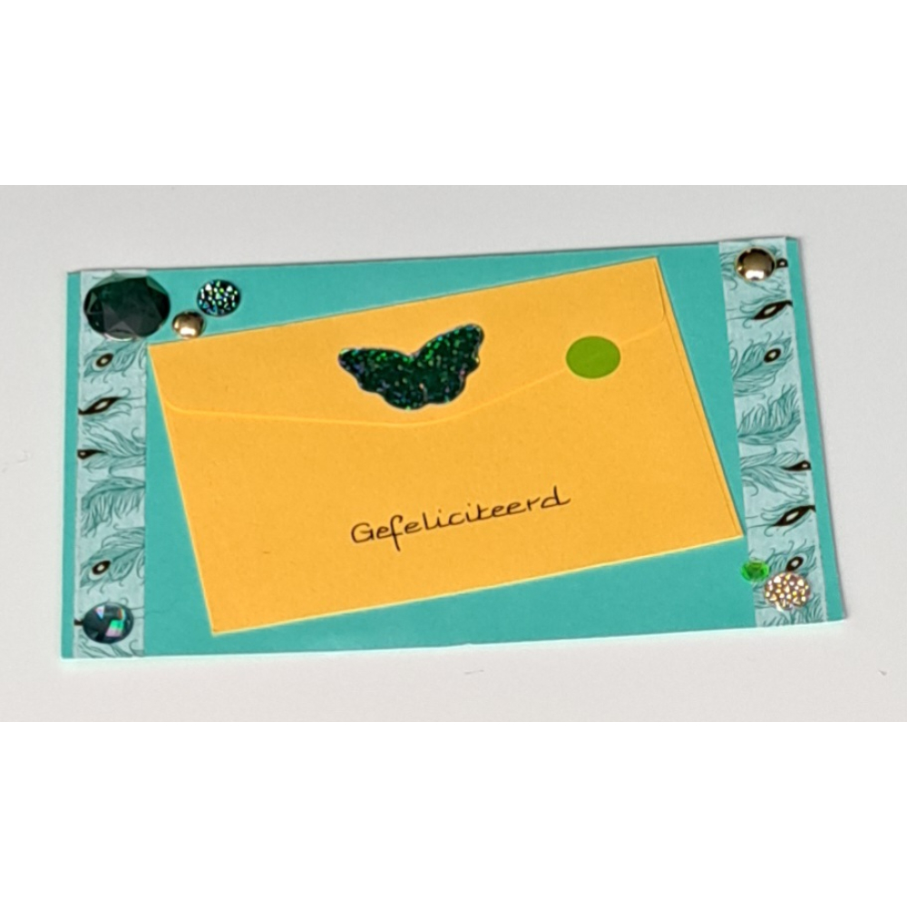 wenskaart-gefeliciteerd-groen-cadeau-envelopje-geel-vlinder