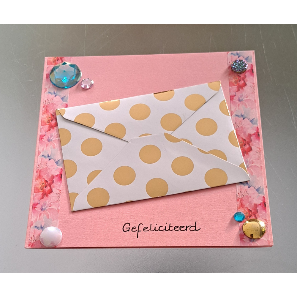 wenskaart-gefeliciteerd-roze-cadeau-envelopje-gouden-stippen