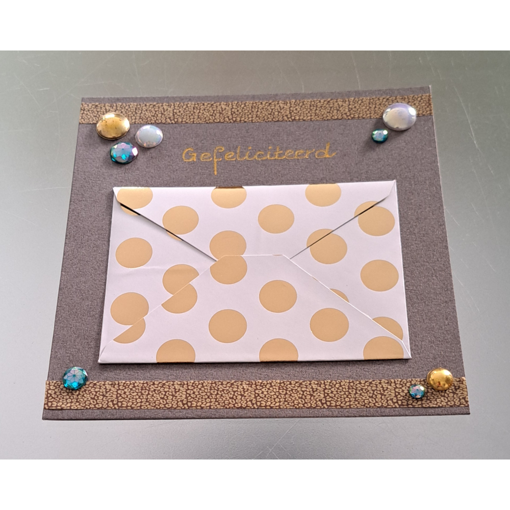 wenskaart-gefeliciteerd-taupe-cadeau-envelopje-gouden-stippen