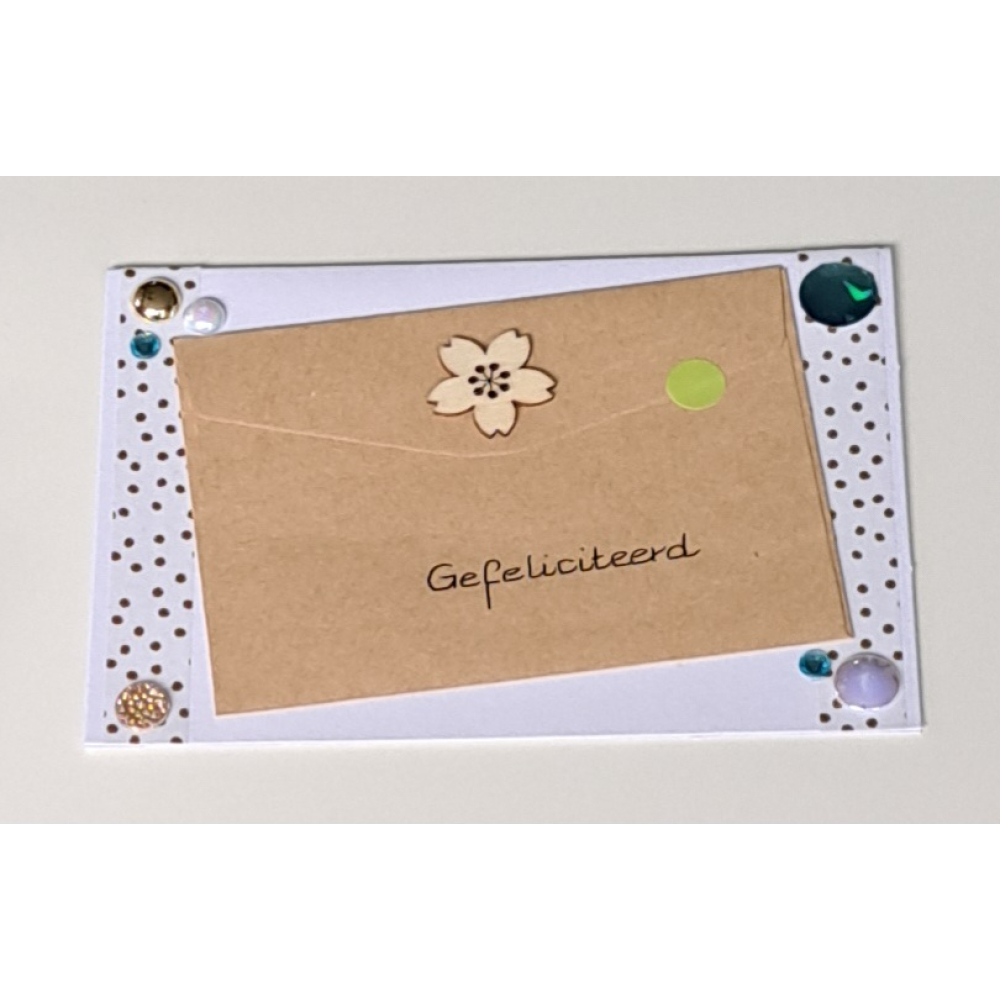 wenskaart-gefeliciteerd-wit-cadeau-envelopje-bruin-bloemetje