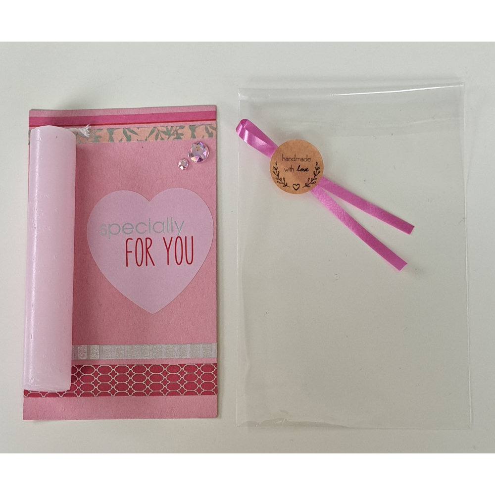 Wenskaartje + kaarsje , roze / SPECIALLY FOR YOU