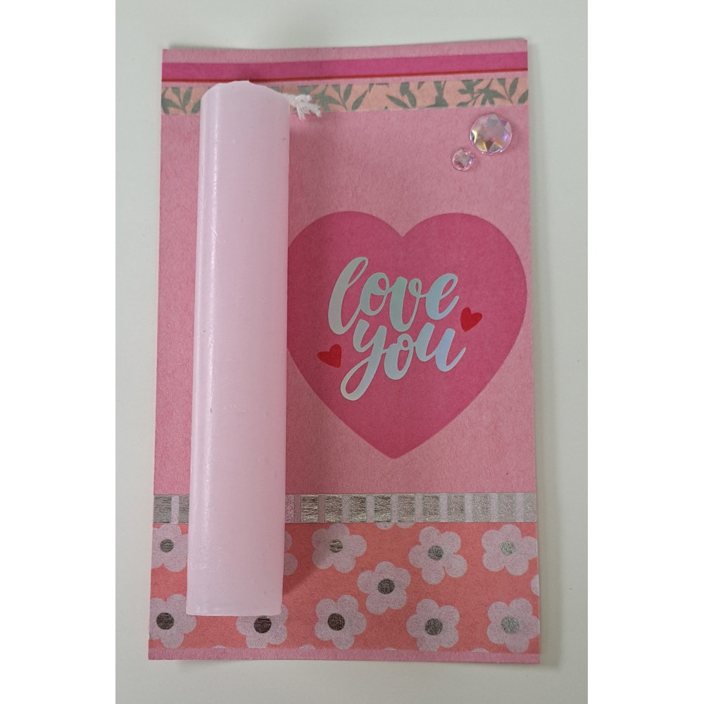 Wenskaartje + kaarsje roze / LOVE YOU